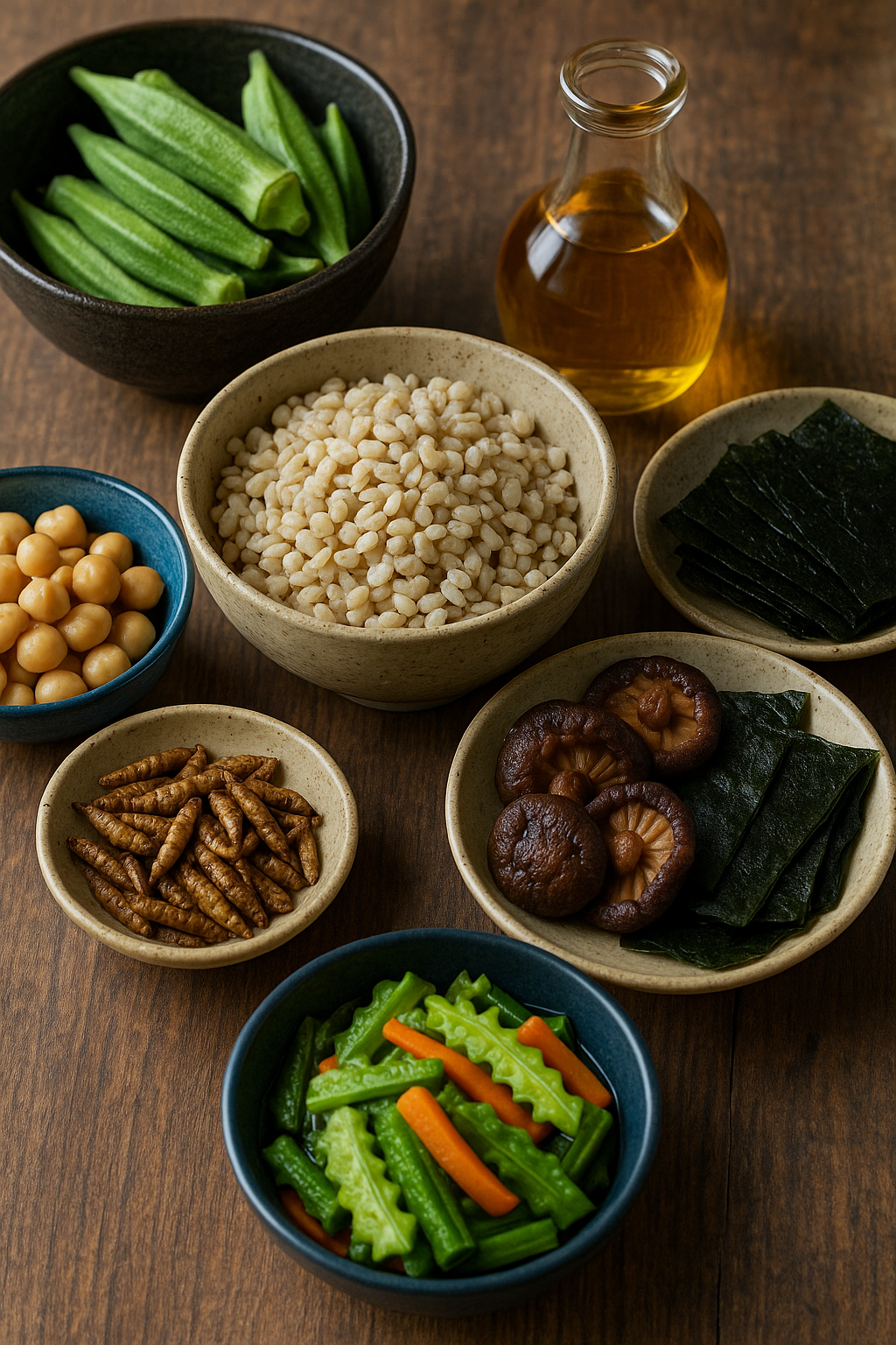 표고버섯, 느타리, 다시마, 스피룰리나 등은 면역력 증진, 항산화 효과, 장 건강에 탁월하며, 고기 대체 단백질원으로 추천됩니다.
