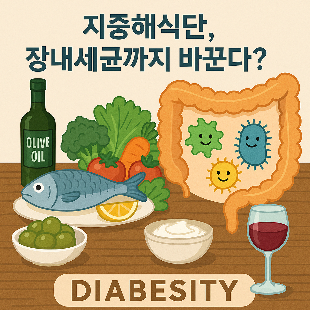 오늘은 장내 미생물과 지중해식단이 **비만과 제2형 당뇨병(디아비시티)**에 어떻게 영향을 주는지를 살펴봅니다.